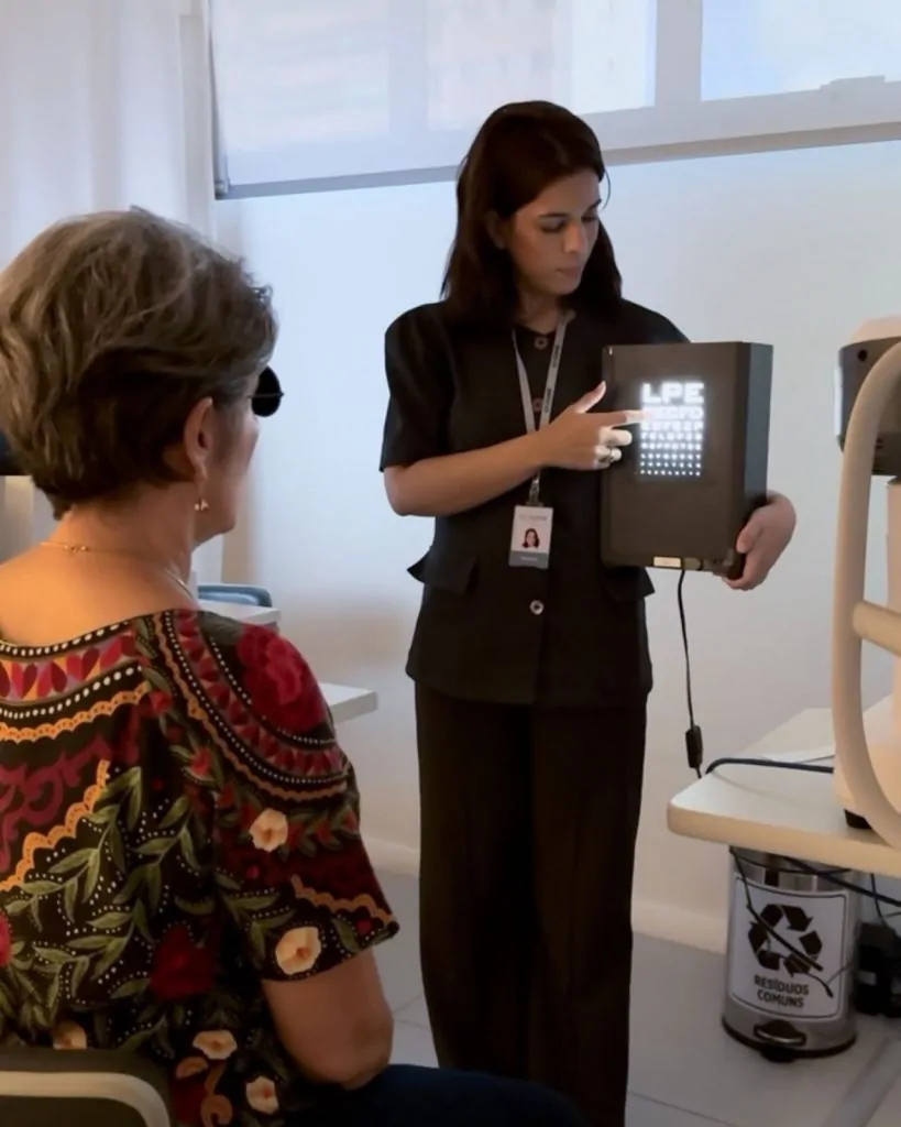 Teste simples realizado durante a consulta para avaliar o potencial de melhora visual ao reduzir a dispersão da luz que entra no olho. Auxilia na diferenciação entre alterações refrativas e possíveis doenças oculares.